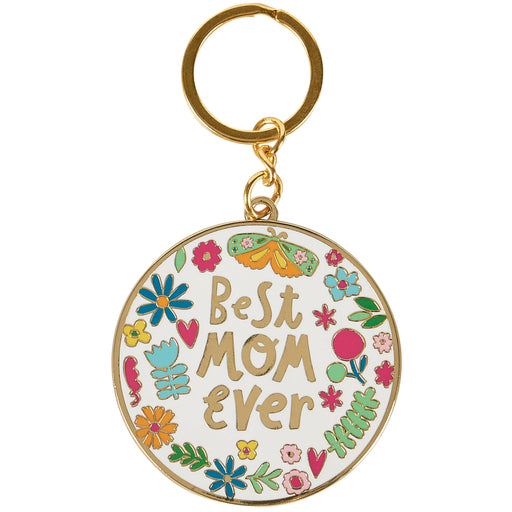 View full detailsA high quality hard enamel keychain featuring a butterfly, flowers, and hearts design with gold outlines and a "Best Mom Ever" sentiment in gold le...