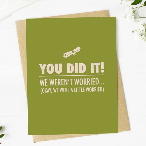 View full detailsGift this graduation card to someone who made you just that little bit nervous about completing their studies... Card reads "you did it! we weren't...