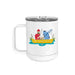 Ceramic coffee mugs can be placed in the dishwasher and microwave.