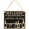 humorous hand illustrated sentiment that reads "It's All Shits & Giggles Until Someone Giggles & Shits." Box sign features a dark stained w...