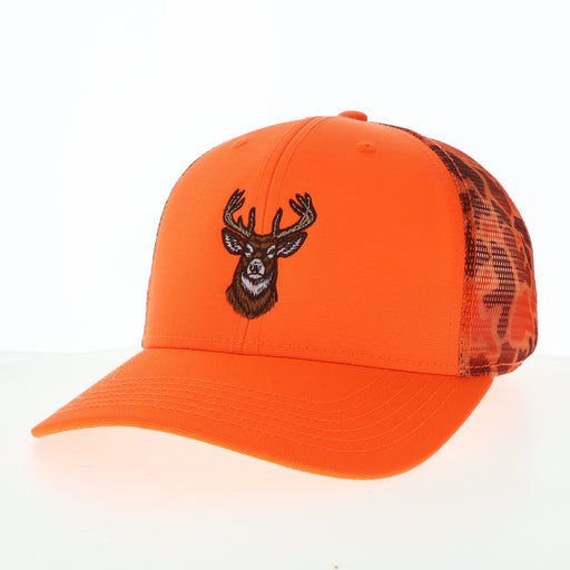 Deer Classic | Blaze Orange Camo Snapback with embroidered deer mount in front