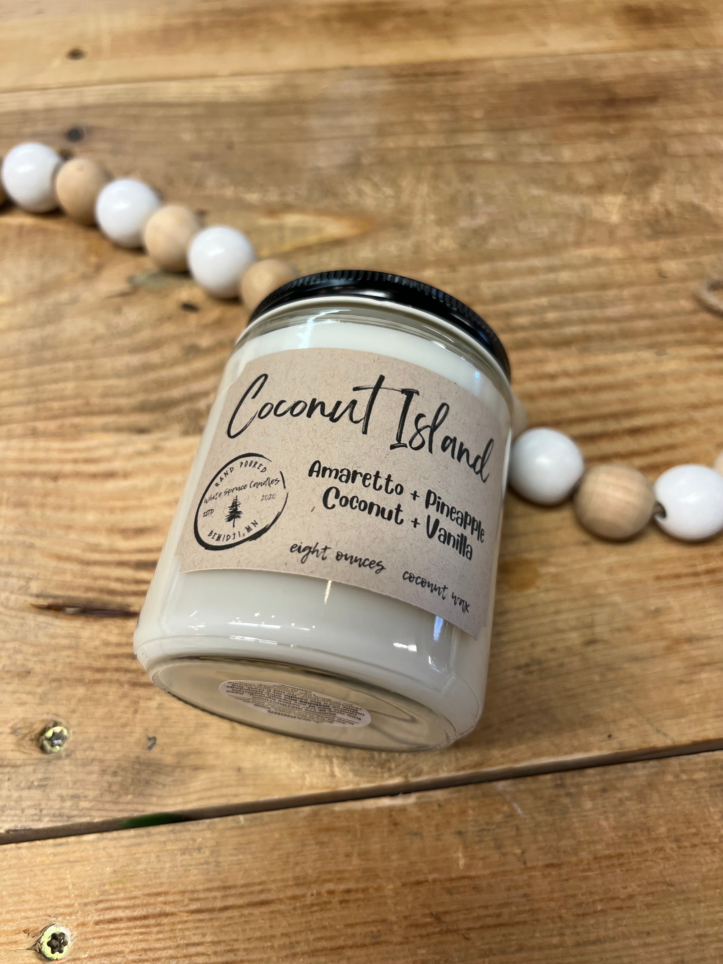 View full detailsCoconut Island 8 oz. Coconut Wax Candle You can enjoy Summer all year long with the White Spruce Lake Days candle! Fragrance Notes: Top: Amarett...