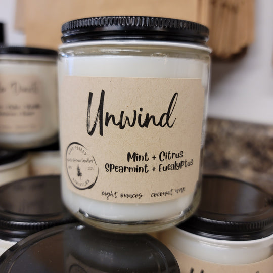 View full detailsUnwind 8 oz. Coconut Wax Candle Exhilarating mint, citrus and bergamot mix with an herbal blend of spearmint, peppermint and soft floral notes of r...