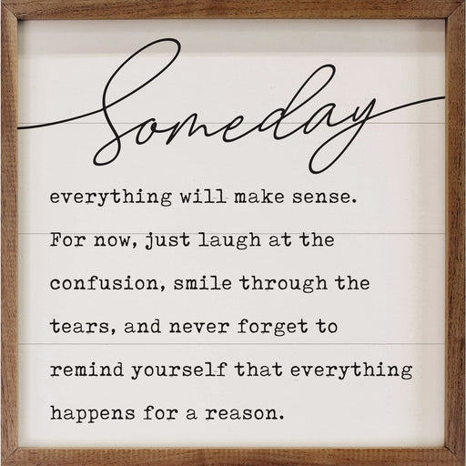 View full detailsSomeday Everything Will Make Sense | Wooden Sign 4x4 This unique piece is a simple way to bring beauty and charm to any wall or shelf within the ho...