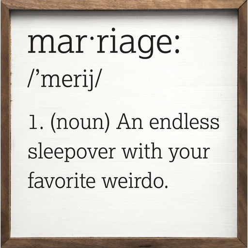 View full detailsMarriage, Endless Sleepover | Wooden Sign 4x4 This unique piece is a simple way to bring beauty and charm to any wall or shelf within the home. It ...