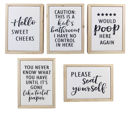 humorous hand illustrated sentiment that reads "It's All Shits & Giggles Until Someone Giggles & Shits." Box sign features a dark stained w...