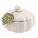 Handcrafted ceramic design featuring a carved stem handle and organic gourd shape in two autumnal colors. A fragrance reminiscent of golden afternoons, each pumpkin is the perfect addition to fall festivities.