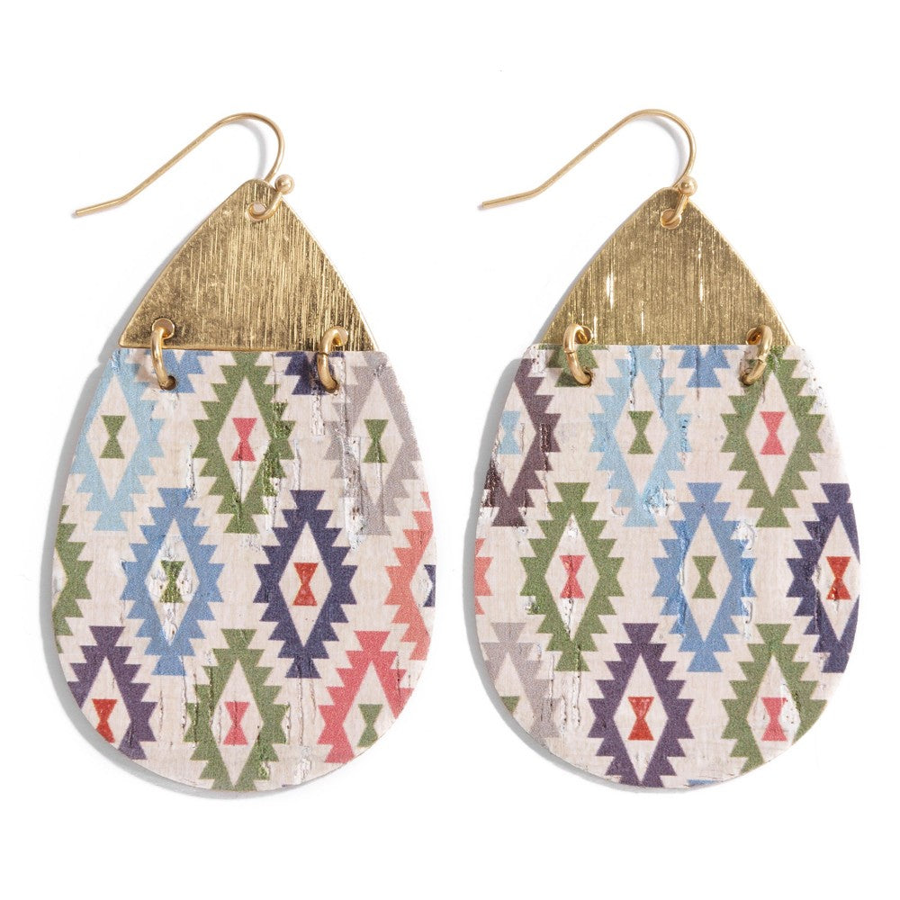 Beautiful cork on leather earrings with a wood accent. This listing is for one pair of earrings measuring 1.25 x 2". Ear hooks add approximatel...