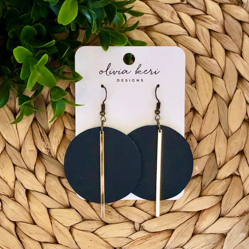 View full detailsFun navy blue leather earrings featuring a gold bar accent. These pretty earrings are so lightweight that you will forget you are wearing them ...