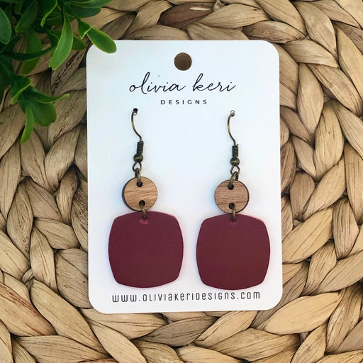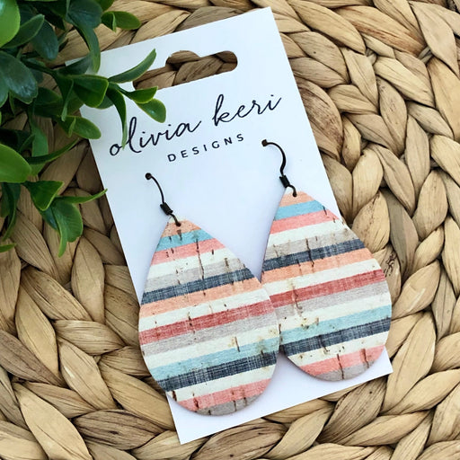 View full detailsBeautiful cork on leather earrings with a wood accent. This listing is for one pair of earrings measuring 1.25 x 2". Ear hooks add approximatel...