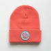 Color: Coral Knit beanie with Embroidered Patch Soft & stretch fit | 100% Acrylic Hand wash cool water | Turn beanie inside-out before washing | Dry flat