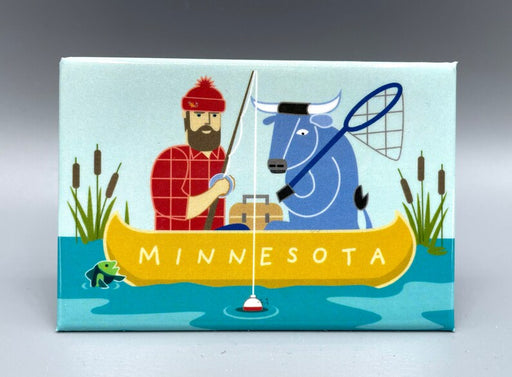View full detailsHandmade by Minnesota artist, Cindy Lindgren. Minnesota's most famous couple, Paul and Babe, paddling their kayak. The 2 x 3" magnet is a high qual...