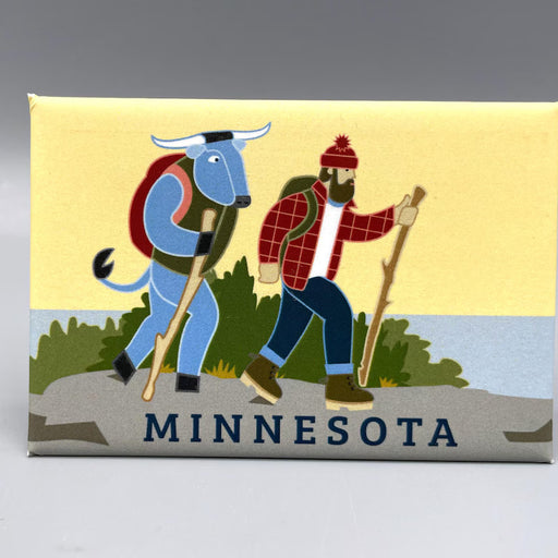 View full detailsHandmade by Minnesota artist, Cindy Lindgren. Minnesota's most famous couple, Paul and Babe, taking a bike ride. The 2 x 3" magnet is a high qualit...