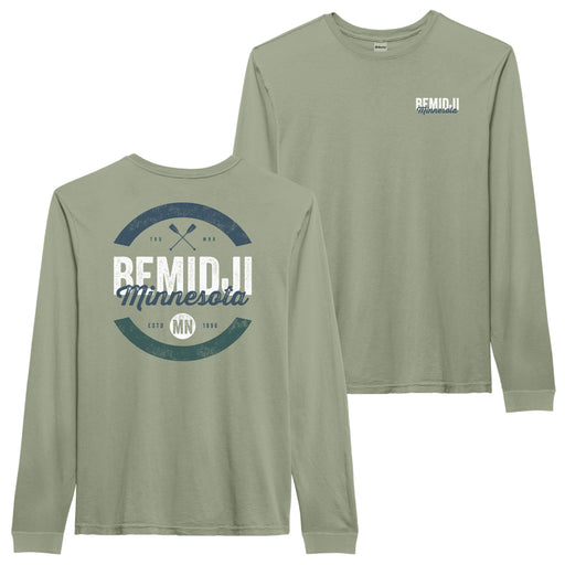 Paddles Up. Soft unisex fitting long sleeve tee with imprint on front left chest, and large imprint on back. Bemidji, Minnesota