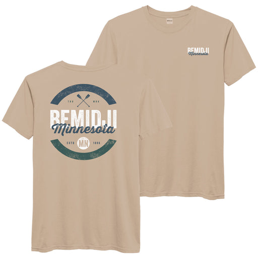 Paddles Up. Soft unisex fitting tee with imprint on front left chest, and large imprint on back. Bemidji, Minnesota
