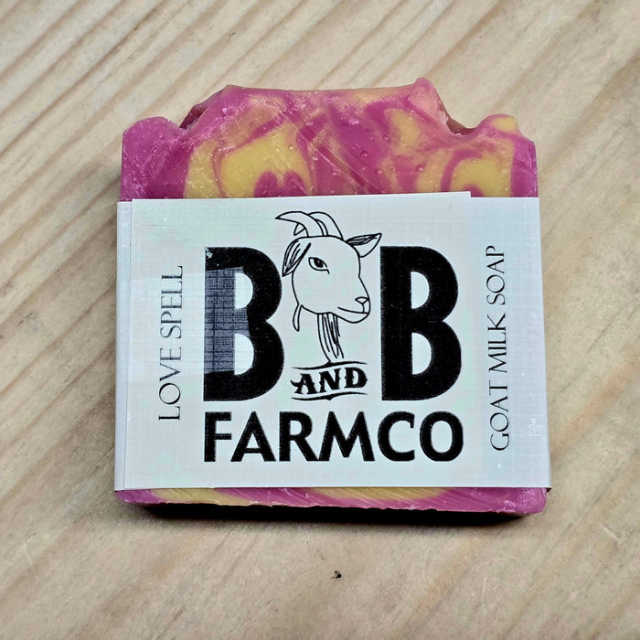 Made with: sunflower oil, coconut oil, olive oil, goat milk, water, sodium hydroxide, fragrance, mica colorant. 4.75 oz