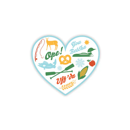 Water-resistant vinyl sticker with MN Love Icons Dimensions: 3 x 2