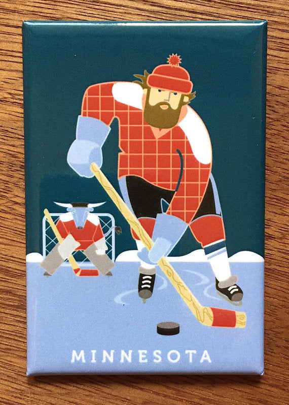 Paul Bunyan and Babe Playing Hockey Magnet