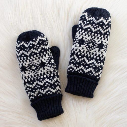 Dk. Navy + White Pattern MittensFleece lined 100% Acrylic