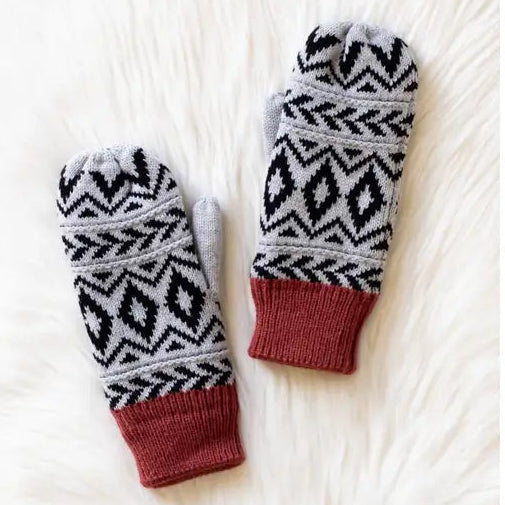 Gray, Black + Rust Pattern MittensFleece lined 100% Acrylic