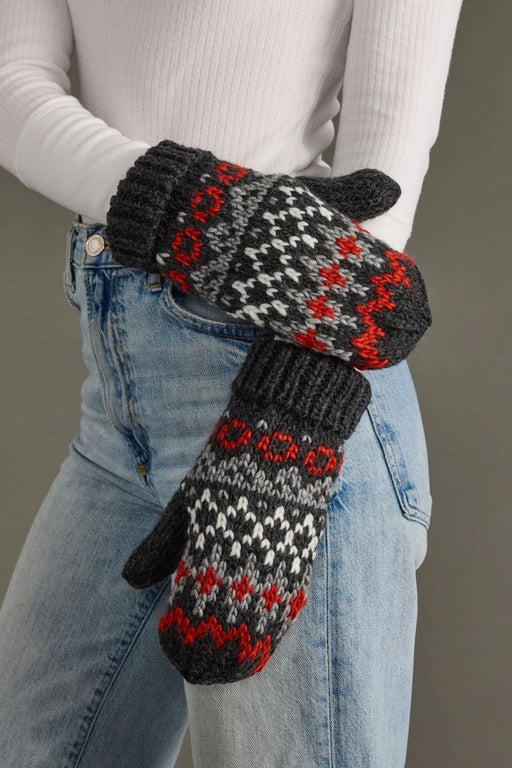 White, Red + Gray Patterned MittensFleece lined 100% Acrylic