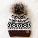 Ivory, Black + Brown Pattern Pom Beanie