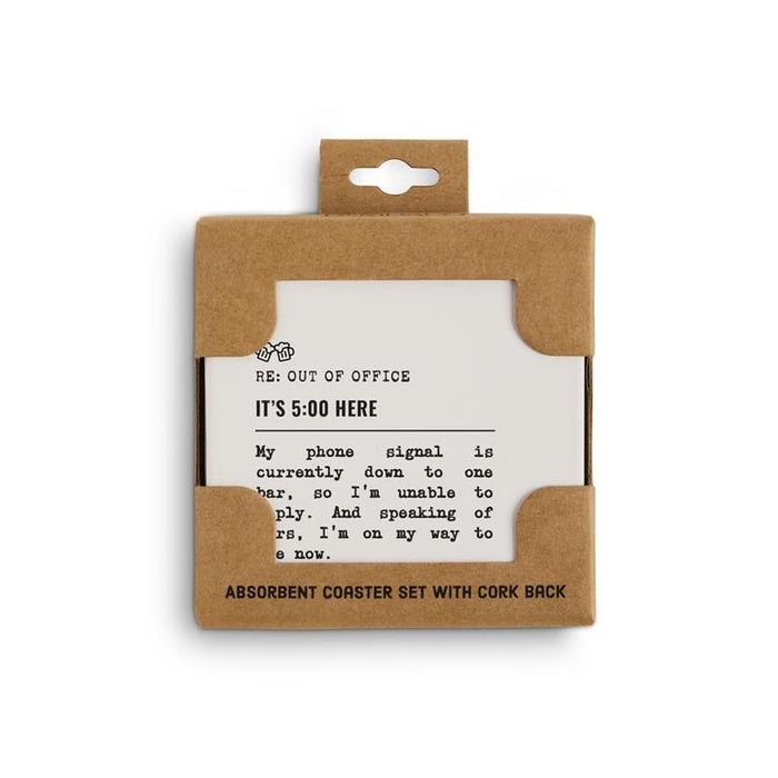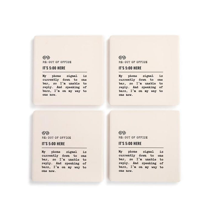 Ignore the inbox, turn on the ol’ automatic email reply and power down the laptop … because it’s time for a well-deserved break. The 5 O'clock Here Phone Signal Coasters -S4 takes you away to favorite destinations and vacation spots you love to visit, whether you're actually there or not – with fun messages that remind us all to find our happy place, every chance we get.