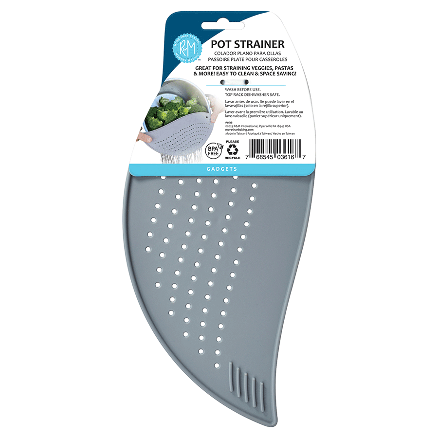 A great addition to any cooks kitchen! Our pot strainer is great for straining veggies, pastas & more! Easy to clean and space saving! 11.5″ Length. Wash before use. Dishwasher safe, top rack.