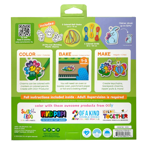 Get ready to color, bake, and shrink your way to charm-making greatness with the Shrink-its! DIY Shrink Art Kit - Garden Pals! Packed with 20 adorable garden-themed designs, this kids craft kit transforms bunnies, bees, flowers, and more into teeny-tiny treasures you can wear or share. Whether your crafty kiddo is personalizing bracelets, keychains, or backpack charms, this kit is buzzing with possibilities.