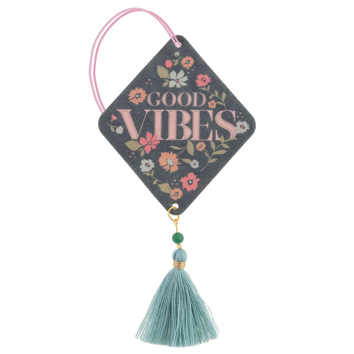 Keep your eye on the road and hands on the wheel while your car smells fresh. Everyone will want to hop in for a ride when your car is smelling great and looking even better because of your tasseled air freshener. Smelling of sweet essential oils and featuring a frosted stone bead and string tassel, this collection of spring air fresheners are a fantastic and affordable gift option for family, friends and even yourself! Available in multiple different designs with print on both back and front, there's a little something for everyone no matter the ride.