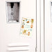 Magnet Size: 2" x 3" size, perfect to stand out on your fridge or any magnetic surface, while still leaving room for other keepsakes. Material: Metal shell with flat, magnetic backing. Front of magnet is covered with clear protective mylar.