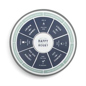 Text on Product:Why limit happy to just one hour?; Name five types of cocktails; City of country?; Name five types of beer; Cats or dogs?; Name five types of wine; Summer or winter?; Name five types of spirits; Hot dog or burger?; What is your favorite drink?; Share your last dream; What is your theme song?; Describe your dream vacation; What always cheers you up?; Describe the best weekend; What always makes you laugh?; Where is your favorite place?