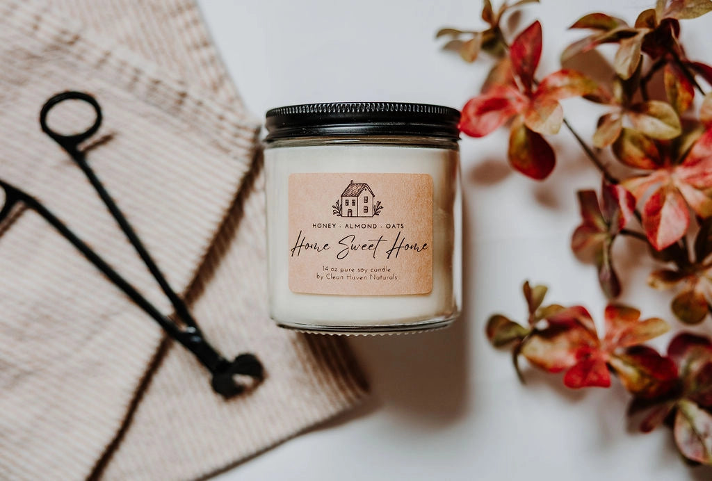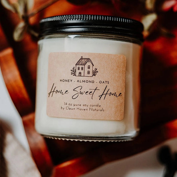 A sweet, lovely housewarming gift candle! Perfect for gift shops, realtor gift baskets or just a sweet addition to any space. Smells like oats & honey. Our pure soy candles are hand poured in micro batches to ensure the best quality & precision. Each 14 oz candle has a burn time of approximately 75 hours. Our customers' number 1 praise of our candles is that they last an incredibly long time and give the perfect scent throw. Not overpowering, but noticeable and to be enjoyed!