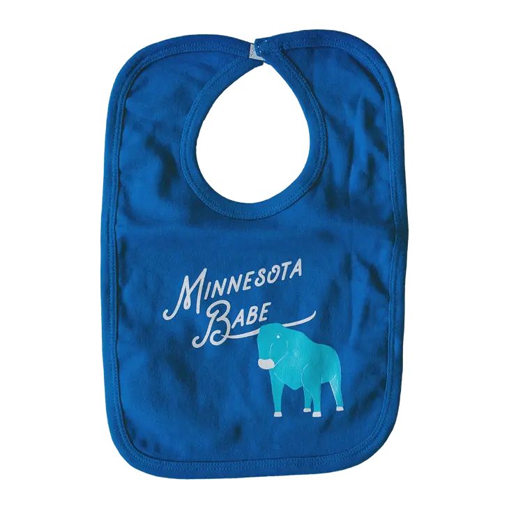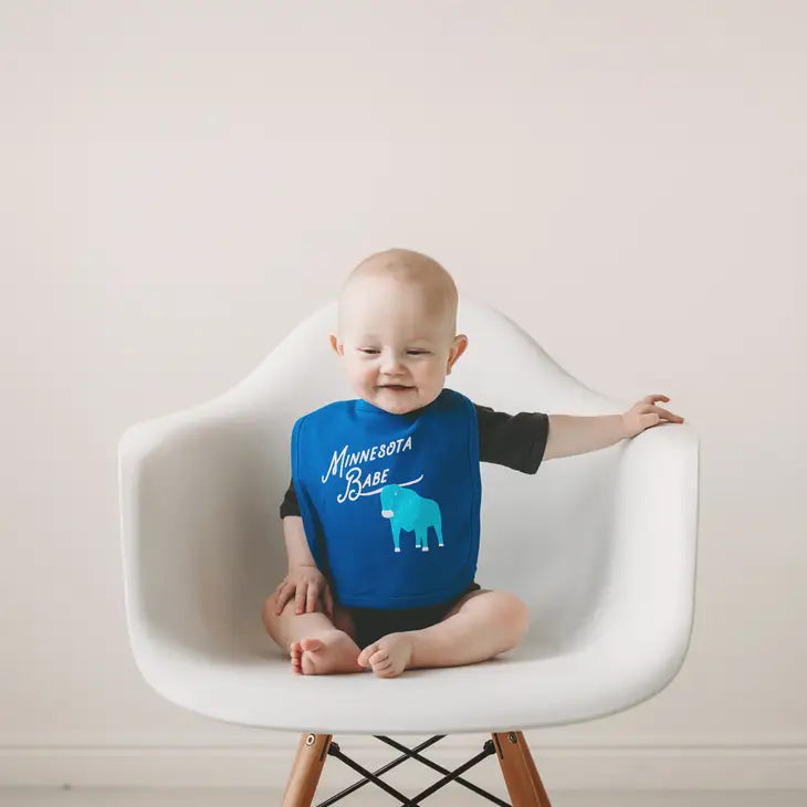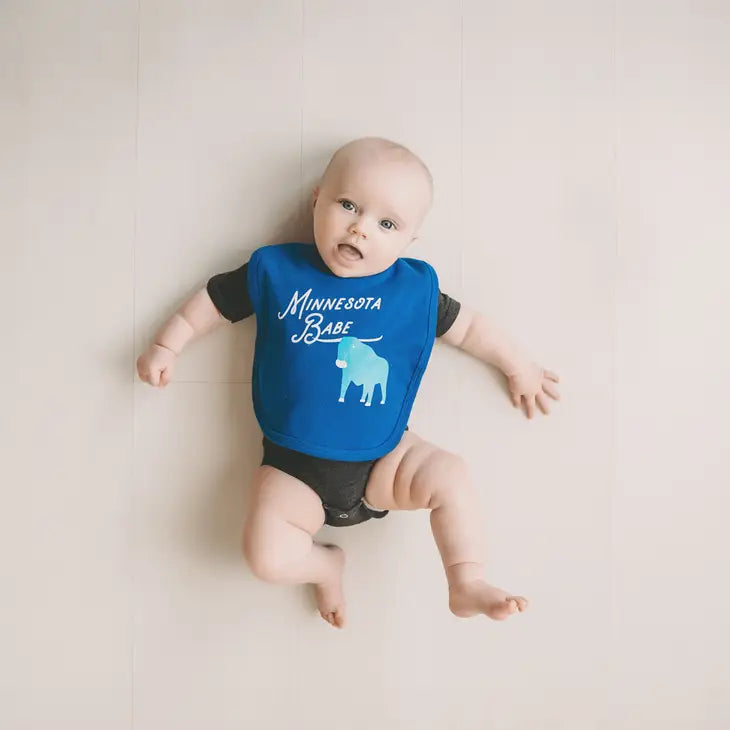 This royal blue bib is made from thick cotton fabric that is soft on baby’s skin while also durable. A velcro closure makes for hassle free changes. It’s generous size helps protect little one's clothing. Each bib is screen printed using lead and phthalate-free inks that hold up wash after wash.