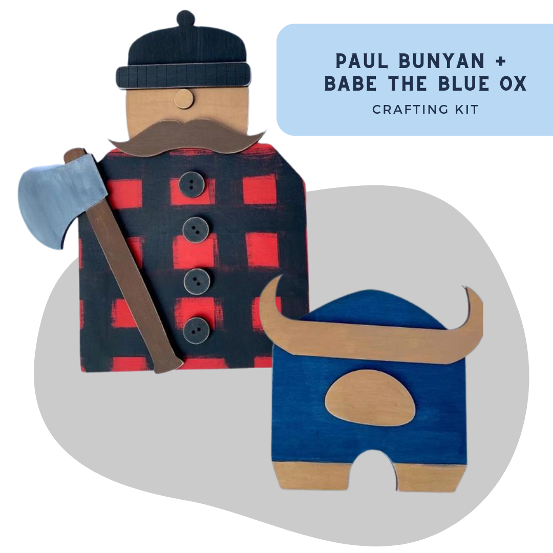 Create your own Paul Bunyan and Babe the blue ox wooden figures. Crafting kit includes all the supplies you'll need plus instruction. Fun for birthday parties or rainy days!