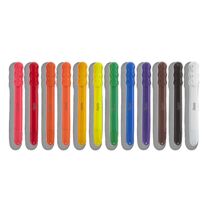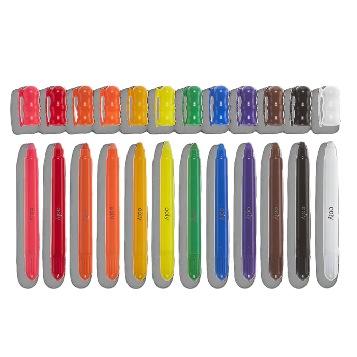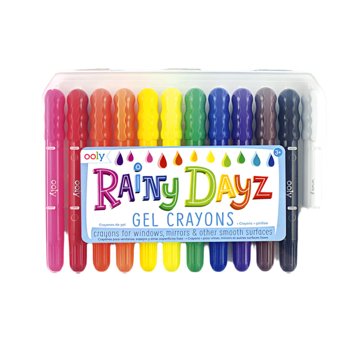 • Make your windows, mirrors and glass surfaces works of art. Rainy Dayz Gel Crayons draws vibrant and bold colors on glass surfaces... and paper too. And for an extra special touch use a wet paintbrush to add amazing watercolor effects too. Comes in 12 bright colors and cleans off easily.