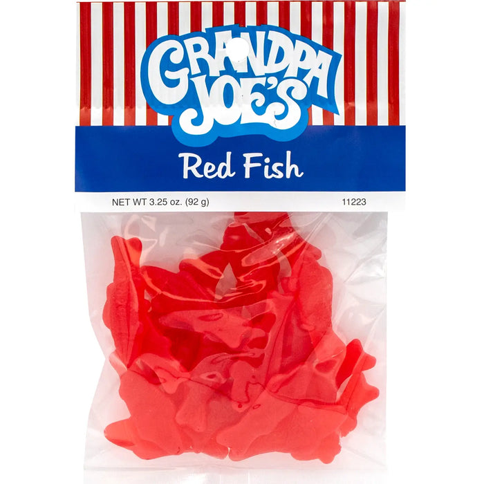 These 3.25oz Grandpa Joe's Peg Bags are filled with chewy, red fish. Keep the bag to yourself or offer a few up to a friend. Toss a bag in your bag pack or your desk drawer for a quick treat. Tear open a bag and dive in.