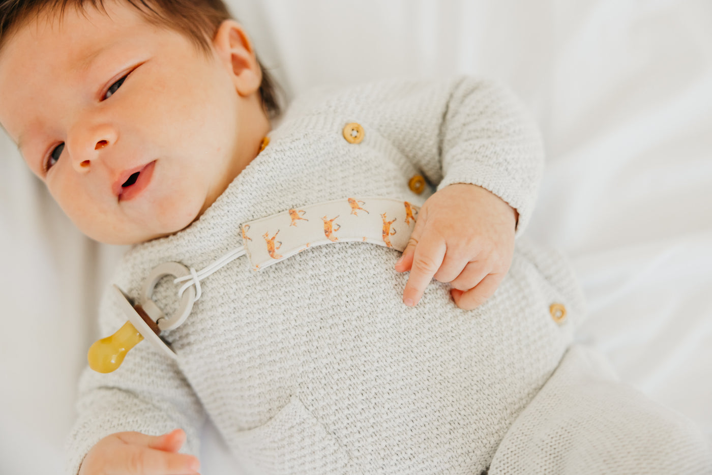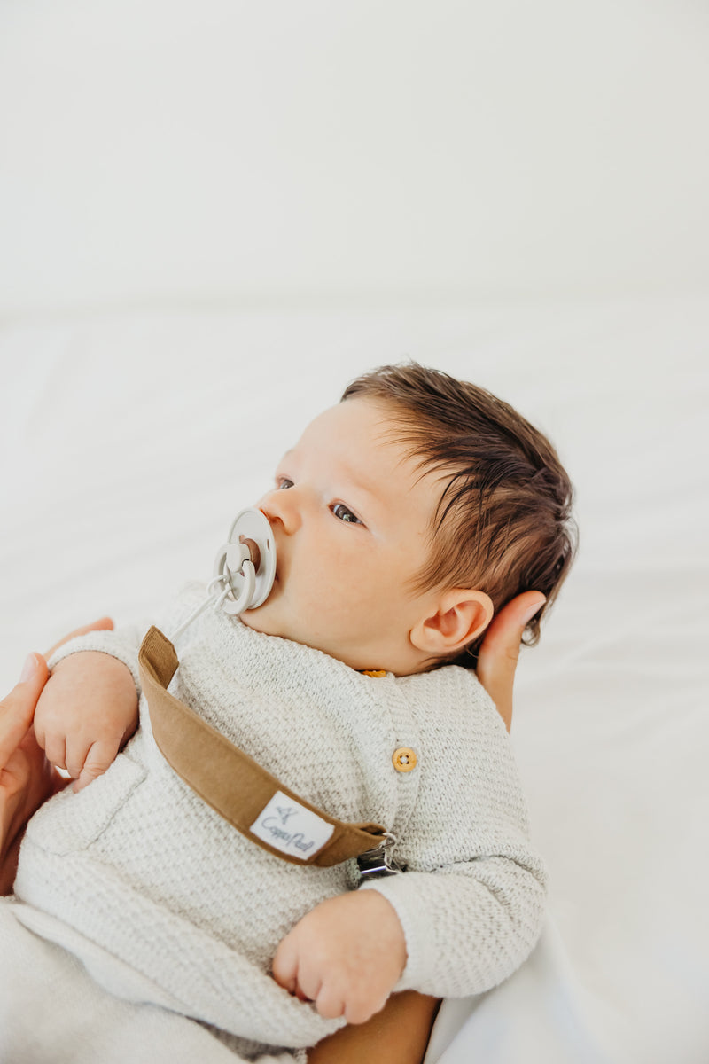 A chic way to keep baby's pacifier close at hand.